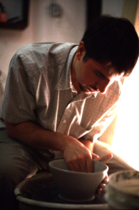 | Dave Liddell's art focus really began for him early in his life. He was often found spending countless hours in the wood-shop making small things for his mother, or fabricating small figurings with a welding setup. Later he petitioned his Grandfather, a longtime hobbyist potter, to teach him wheel thrown forms in clay. He agreed to give pointers, but thought that the real way to learn a medium was to discover it for yourself. He was right. Over the next few years Dave worked on his ceramics skills, continually improving and finally understanding what his Grandfather had meant. He eventually began giving private lessons to beginners who desired to learn. He never charged a penny as long as the student really wanted to learn. Watching this intensity and ambition come alive in his pupils was reward enough. He taught using techniques he had created; never having taken a formal class himself. At the same time stressing to his students what his Grandfather had really taught him; one must find their own way to really embrace a medium. |